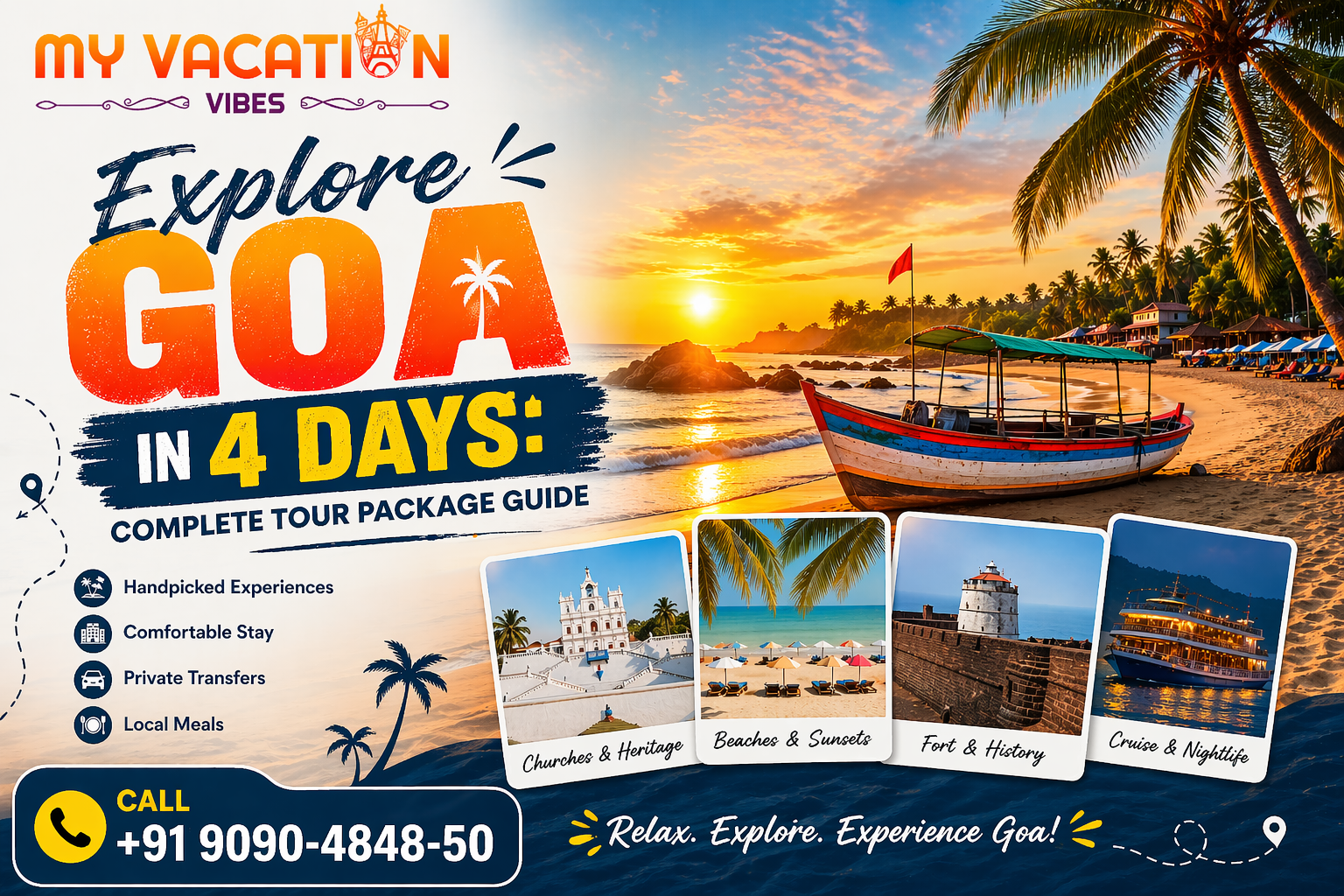 Plan your dream Goa getaway today! Visit our website to discover complete details and start your journey. Call us now at +91 9090-4848-50 for more information.